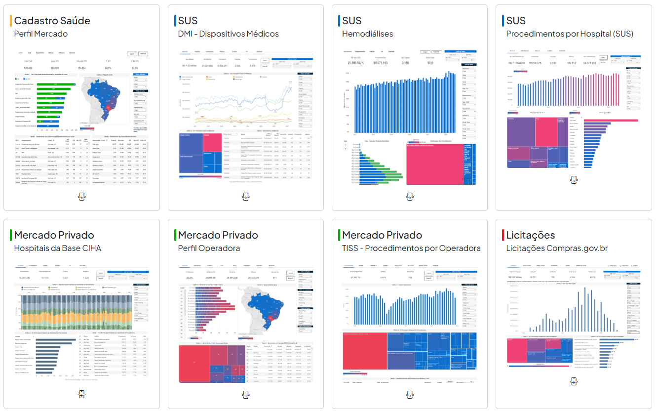 - Tomada de decisões informadas: acesso a dados acurados e atualizados sobre o mercado de saúde no Brasil para otimizar a alocação de recursos;